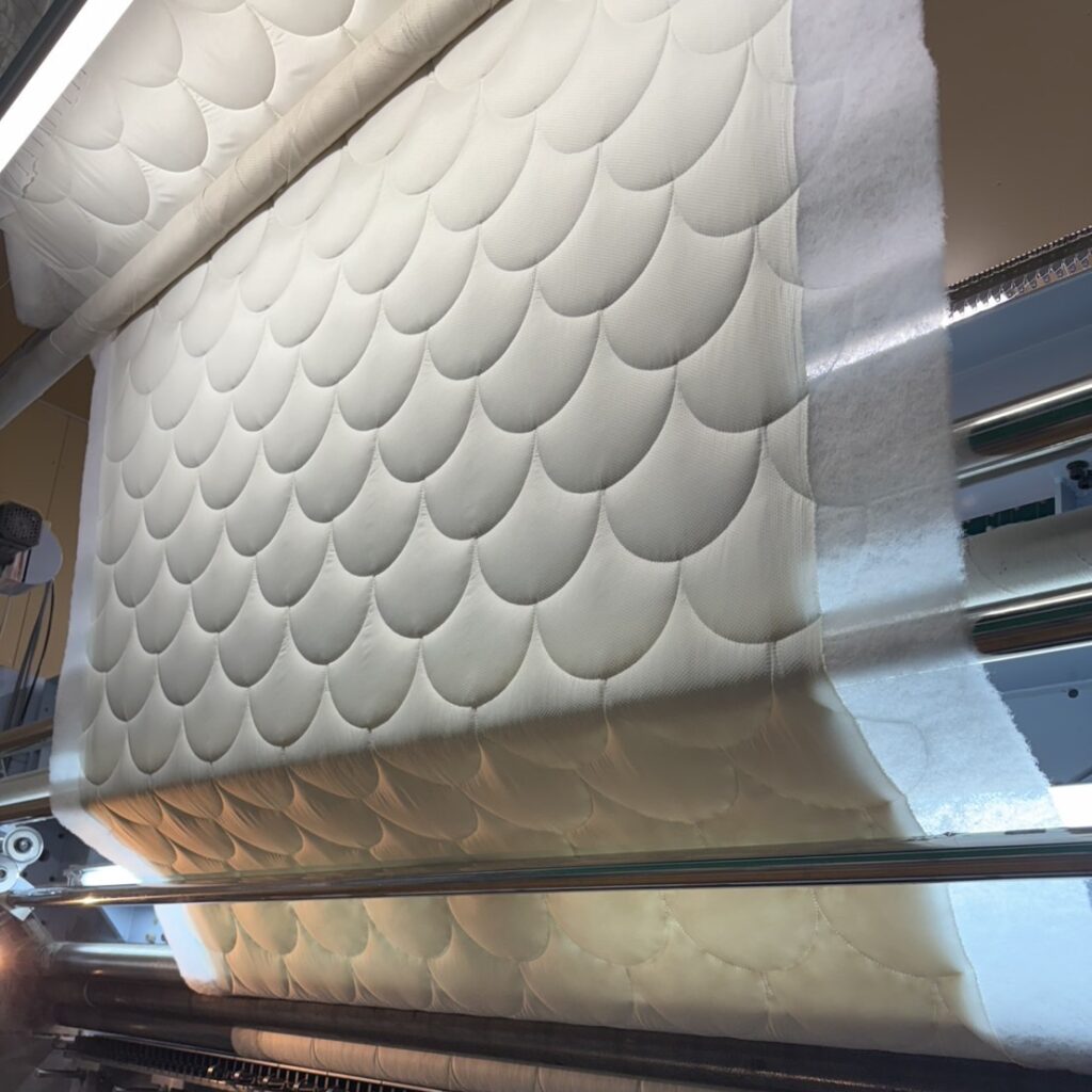 | キルティング加工について | キルトパターン:雲模様...縁起の良い扇形のような柄を採用しています。 心地よいふっくら感を実現するため、やさしいタッチのキルト加工を施しています。 |